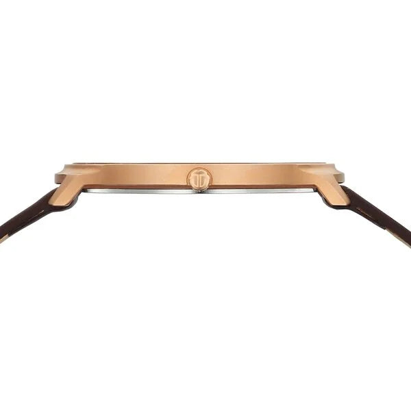 A captivating timepiece from Edge by Titan, celebrated for its sleek and sophisticated design. Powered by the precise T9081 in-house calibre movement, it offers reliable quartz accuracy. Crafted from high-quality stainless steel, the watch features a slim 4.1 mm case thickness, ensuring both style and comfort. Sapphire glass provides exceptional clarity and scratch resistance, protecting the elegant white dial with its minimalist design. Complemented by a brown leather strap, this watch exudes timeless elegance, perfect for any occasion. With 30 meters of water resistance, it’s ideal for daily wear, capable of withstanding splashes and brief immersions. The clean, refined dial with simple hour markers and hands ensures easy readability. A versatile accessory for both formal events and casual outings, combining style, functionality, and craftsmanship in one stunning piece.
