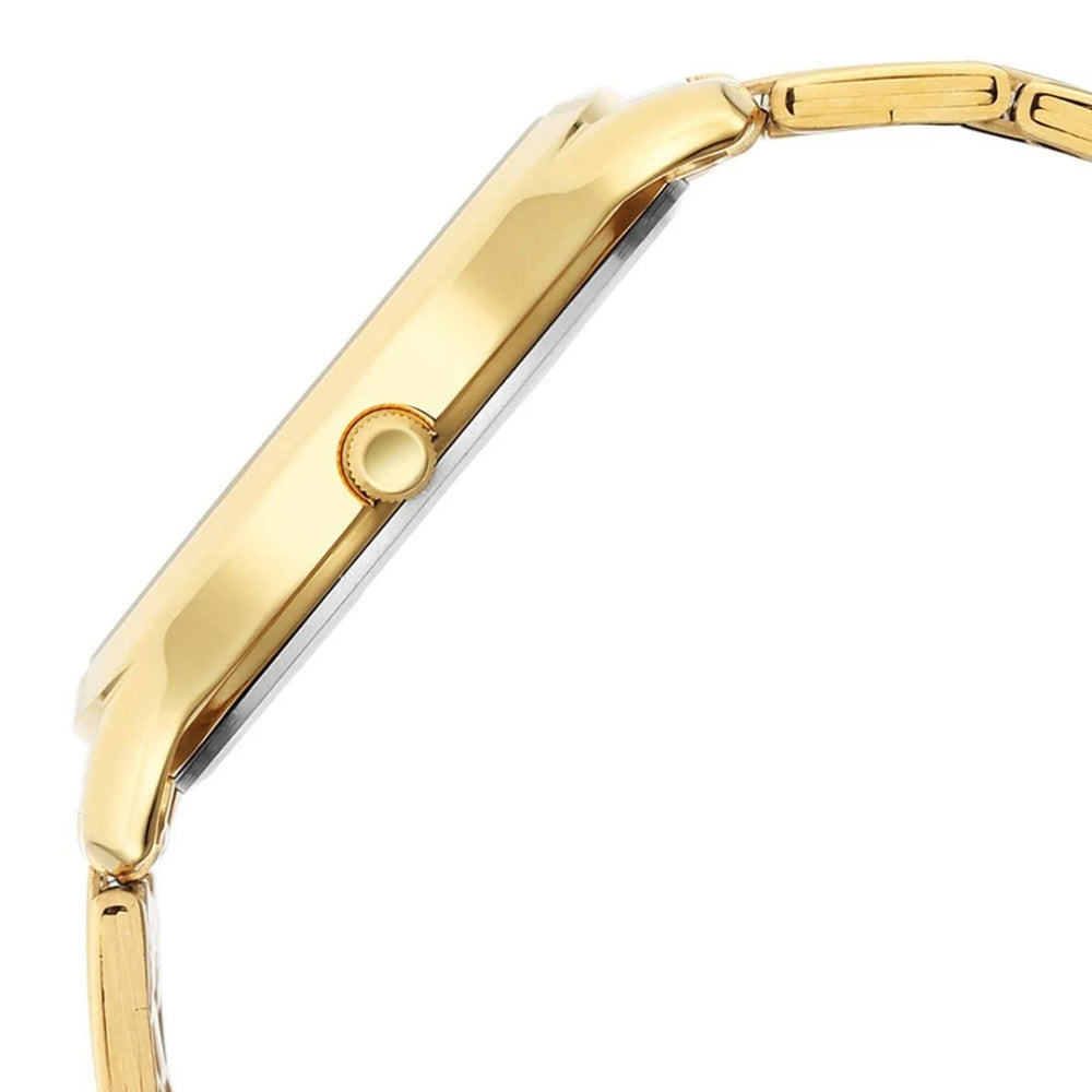 Command attention with timeless elegance wearing this men’s analog watch from Titan’s Karishma collection. Housed in a refined 40 mm round case, the radiant gold dial features a clean three-hand display powered by reliable quartz movement. The matching gold-toned stainless steel bracelet enhances its luxurious appeal, making it an ideal accessory for both formal and festive occasions. Water-resistant up to 30 meters and secured with a sturdy hook buckle clasp, this watch offers a perfect blend of style, comfort, and durability.