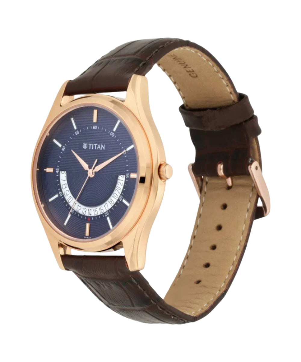 Titan Lagan Blue Dial Analog Leather Strap Watch for Men NS1713WL01