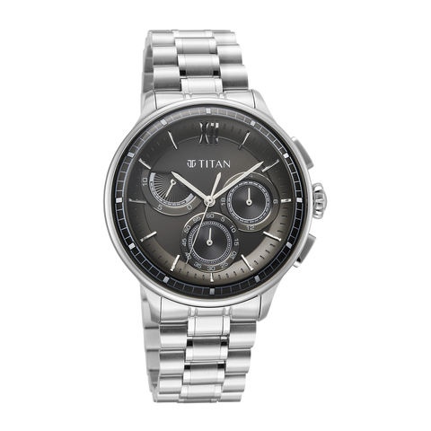 Titan Quartz Black Dial Analog Chronograph Stainless Steel Men's Watch 90218SM01