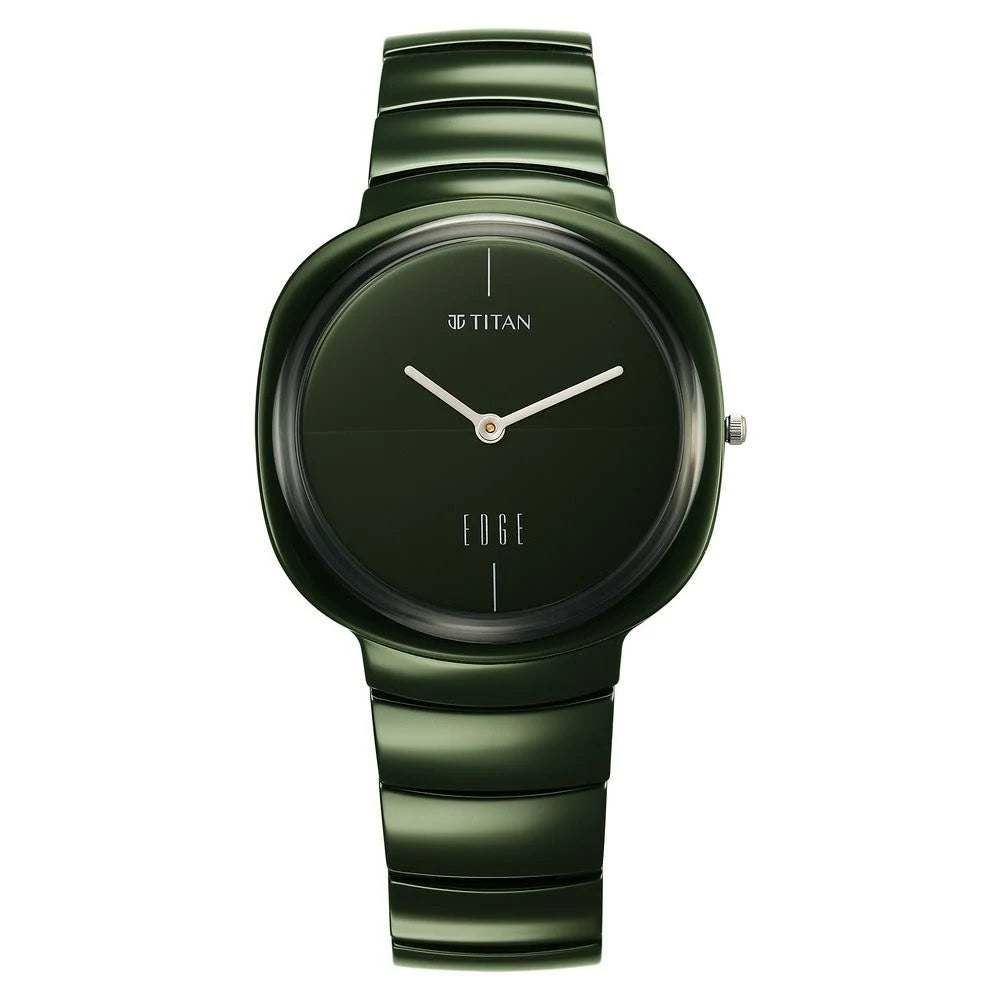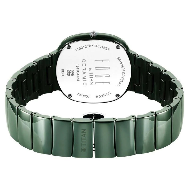 Titan Squircle Camo Analog Green Dial Ceramic Strap Watch For Unisex 1841QC05