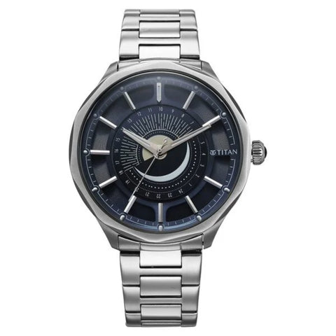Titan Stellar Analog with Sun Moon Phase and Blue Dial Men Watch 10028SM01