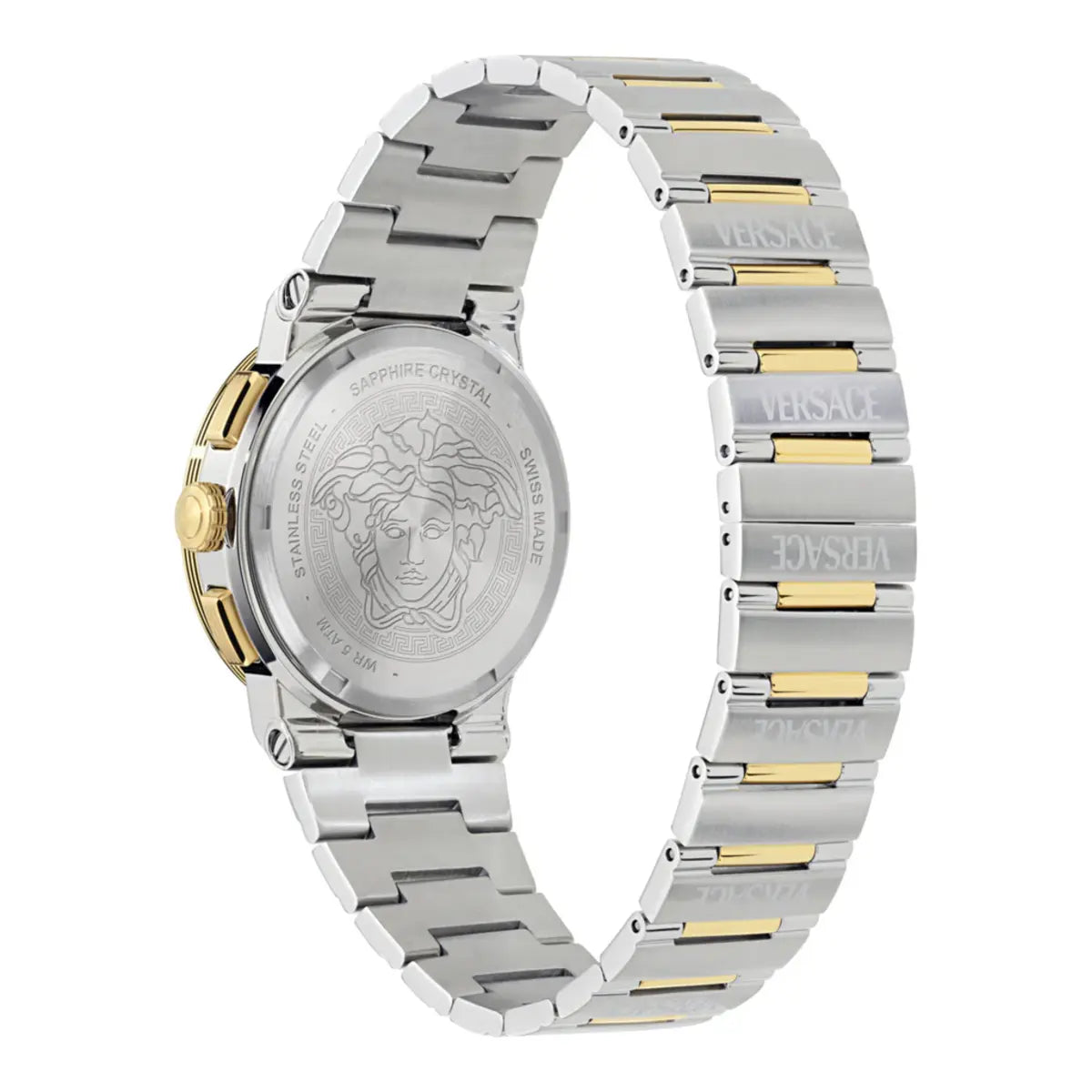 Experience bold sophistication with the Versace VEKMA0425 chronograph watch for men. Featuring a striking green dial, this timepiece blends modern style with precision quartz movement for reliable performance. Housed in a robust stainless steel case, the watch offers a sleek analog chronograph display that balances functionality with elegance. Its stainless steel strap ensures a comfortable, secure fit, while the sapphire crystal protects the dial with lasting clarity. Water-resistant and crafted with Versace’s signature attention to detail, the VEKMA0425 is a statement accessory for the contemporary man who values style, performance, and timeless appeal.