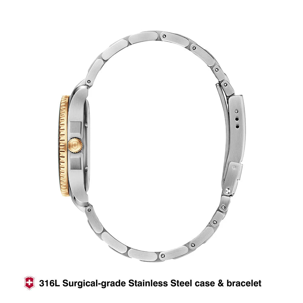 Encased in a 43mm stainless steel body, this striking timepiece features a rich green dial complemented by a distinctive two-tone bracelet for a bold, sophisticated look. The unidirectional rotating bezel brings a rugged, sporty flair, while luminous hands and hour markers ensure visibility in any lighting. Crafted with a scratch-resistant sapphire crystal, this watch is as tough as it is refined—offering water resistance up to 100 meters, perfect for both daily wear and casual aquatic activities. Whether in the office or outdoors, the Maverick Large blends style and substance effortlessly.